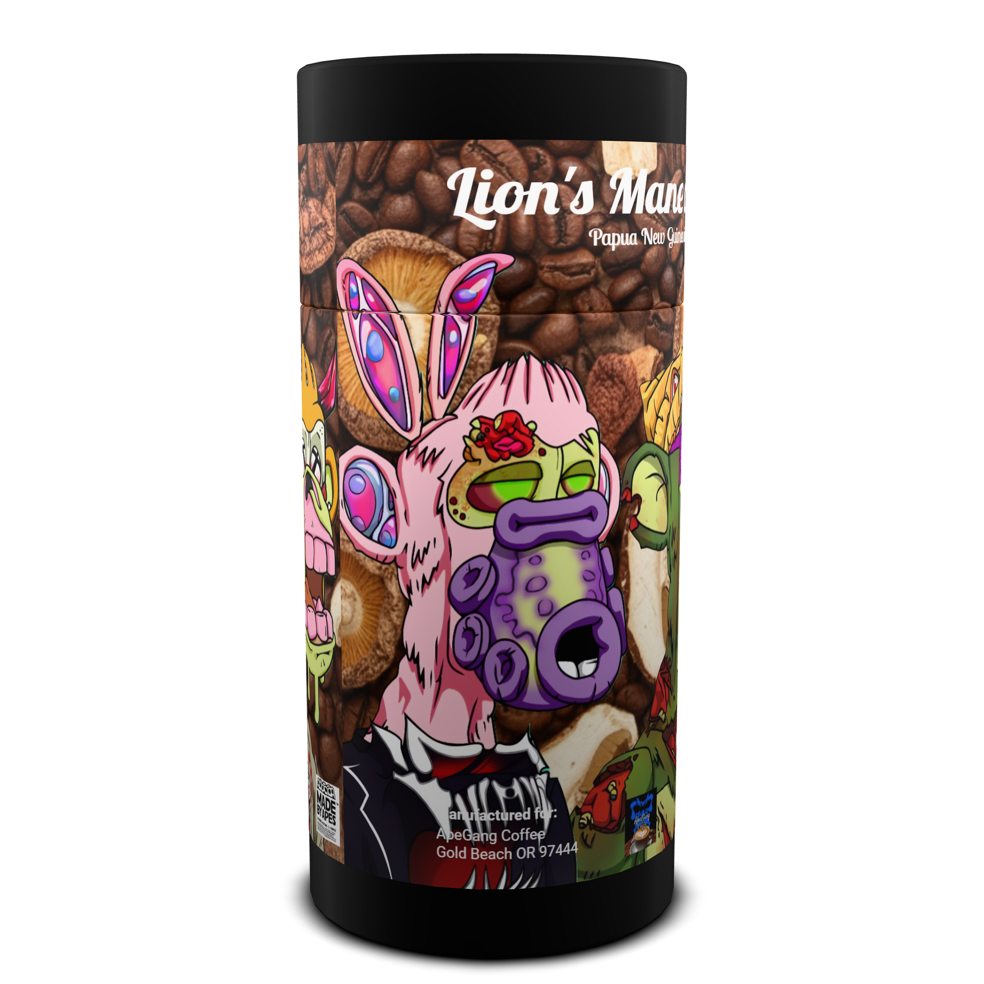 Traditional Papua New Guinea Arabica varietals for structure, sweetness, and bright complexity, complemented by functional mushrooms: Lion's Mane for crisp, focused clarity and Chaga for smooth, earthy depth and a lightly vanilla-woody nuance.